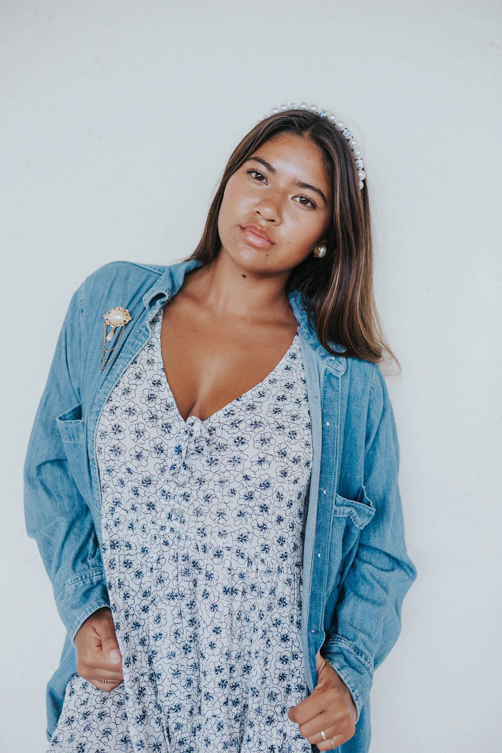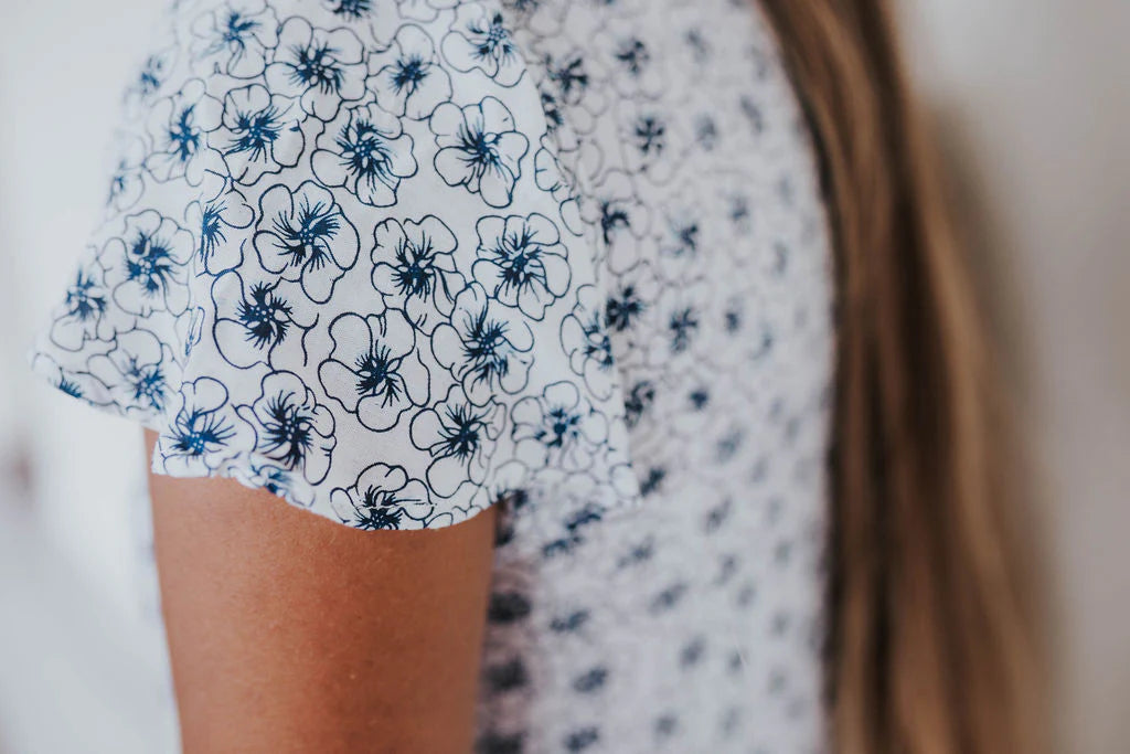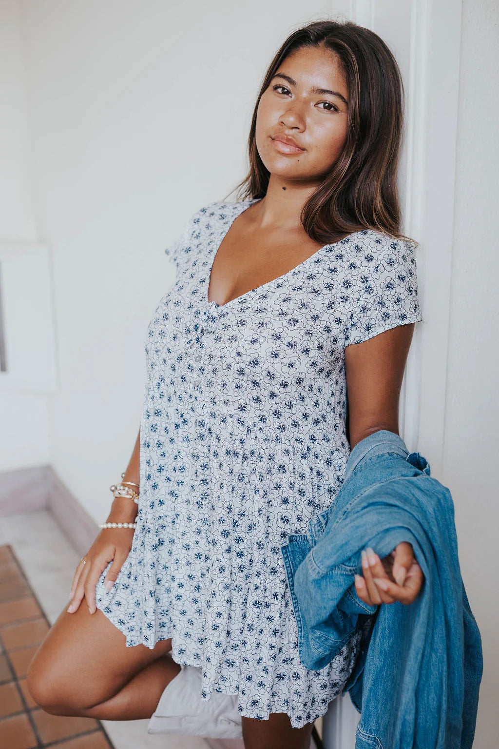 Wear the Babydoll dress while running errands around town or pair with boots, add a jean jacket and your favorite jewelry for a night out. This is a super comfy piece with flutter sleeves, a slight V neck line and a loose fitting waist attached to a tiered skirt complete with shell buttons.