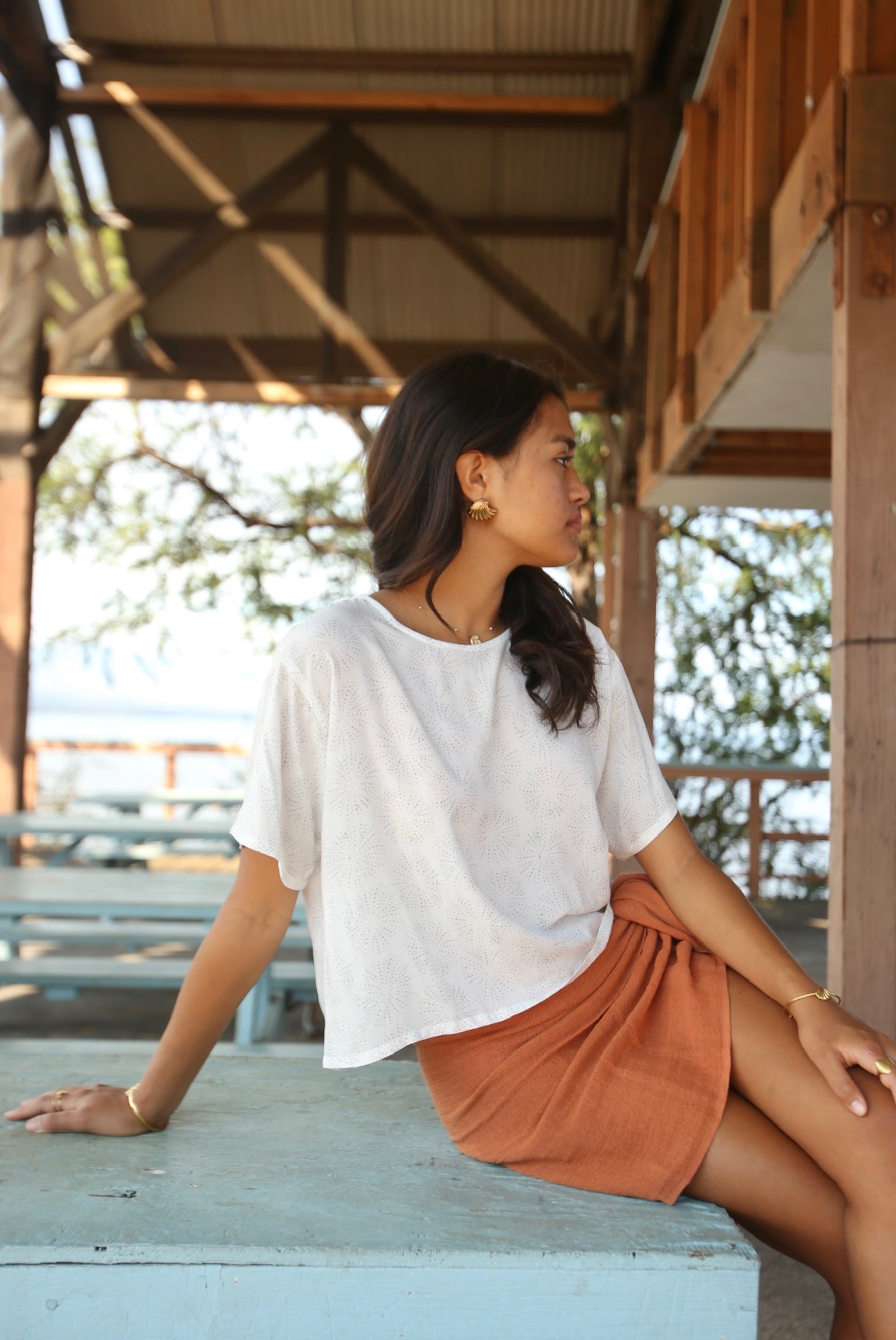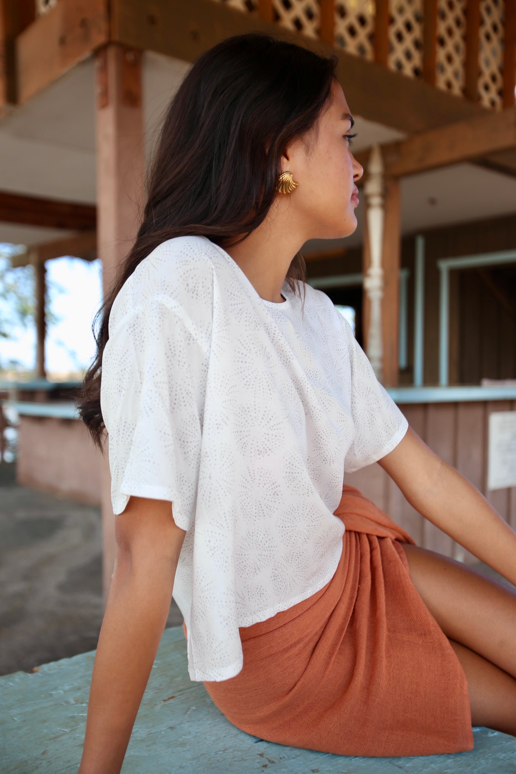 The Cabana Top is a short-sleeve full-length shift top made from lightweight rayon. Designed for island life with with a relaxed fit and to pair perfectly with shorts, jeans or swim bottoms. This t-shirt and vintage aloha structured top is a versatile must-have for any resort wear wardrobe.