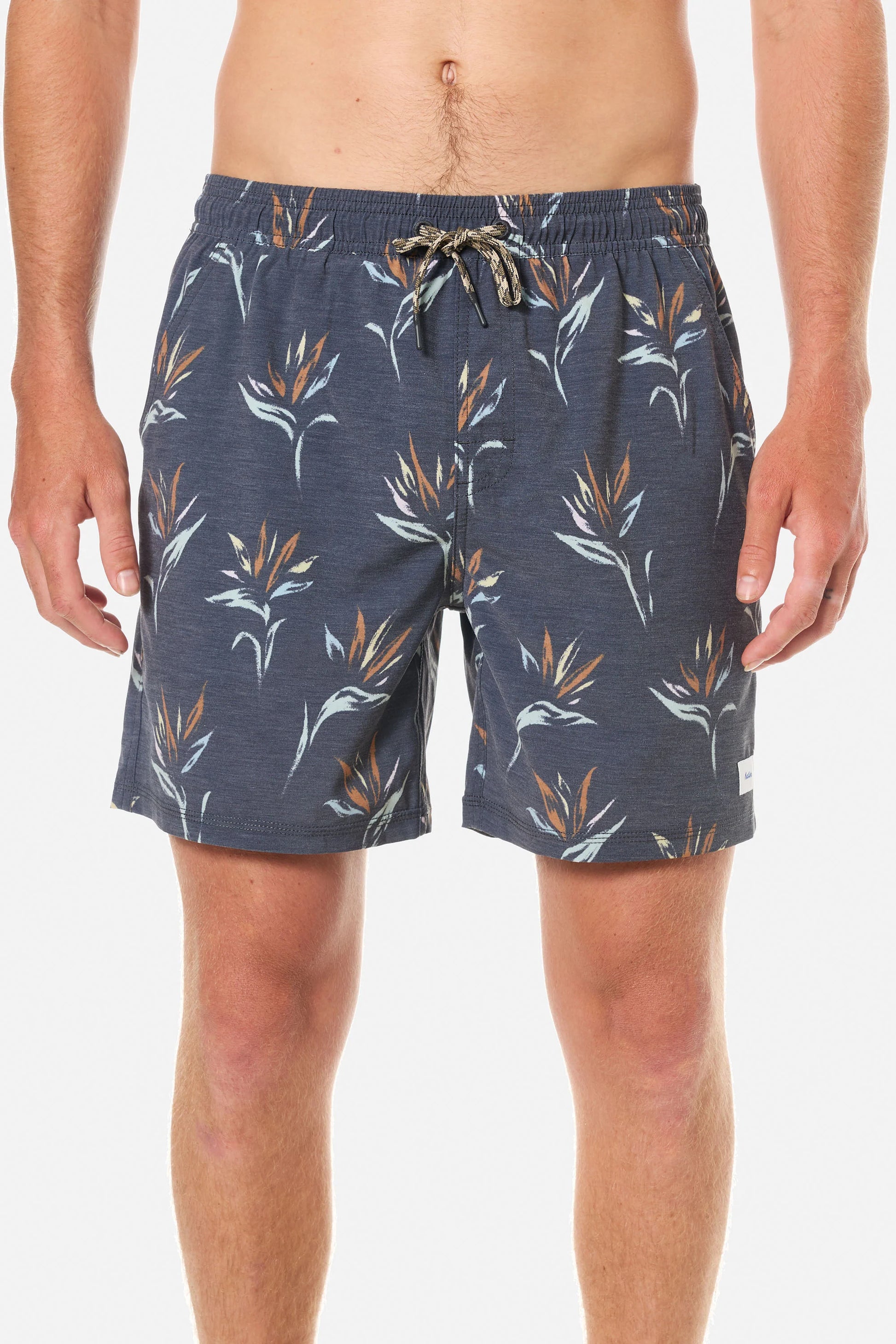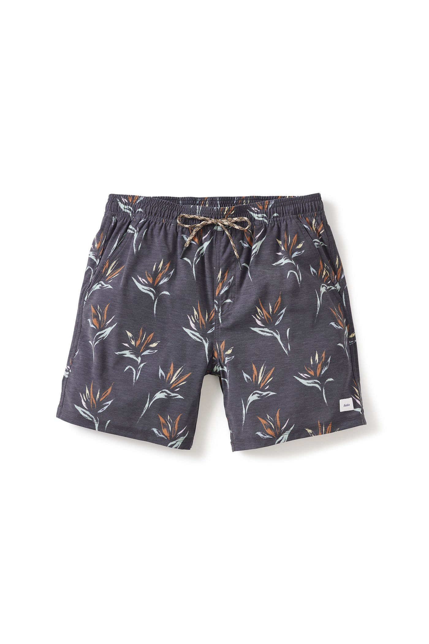 Featuring a custom birds of paradise floral, the Lilo Multi Volley comes in a new tri-blend fabric, featuring Repreve recycled polyester, front slash pockets, elastic waist, mesh brief lining, and an interior stash pocket, ready for the beach or day-to-day.