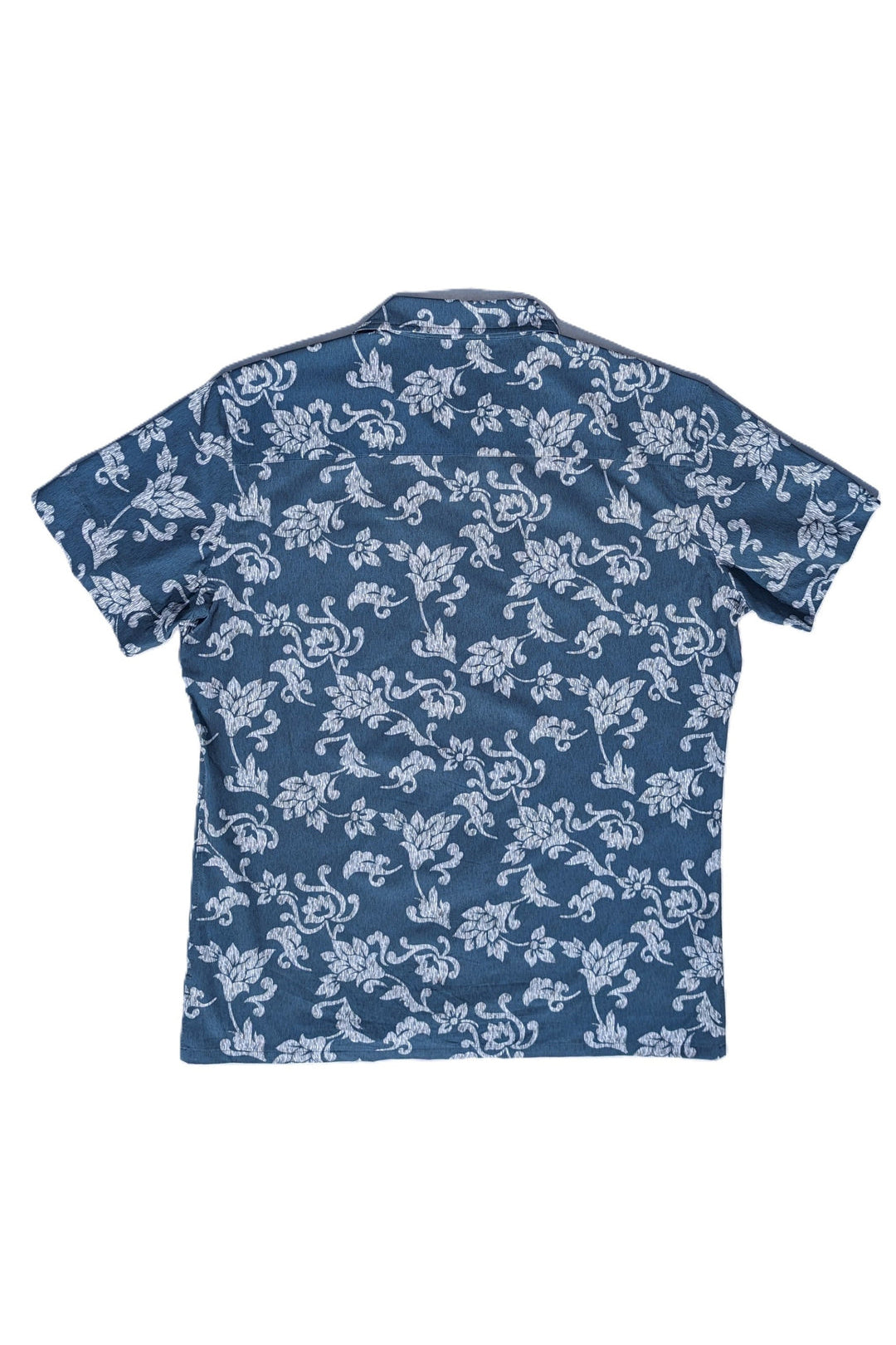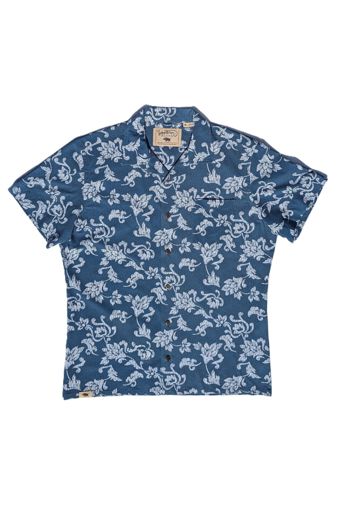 This is a classic Tahitian-style print inspired by the first pareu prints to be used on Aloha shirts in Hawaii.