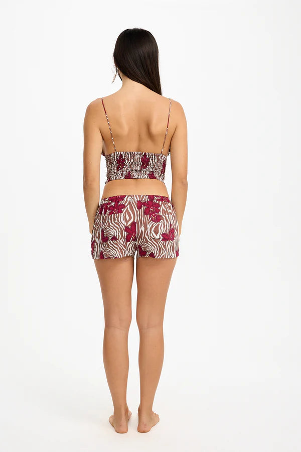 This top features a smocked band with a cute cutout. Adjustable front self tie skinny straps with our signature Benoa leaf details. The perfect top to match with our shorts or a casual pair of jeans. Your new favorite top for any occasion!