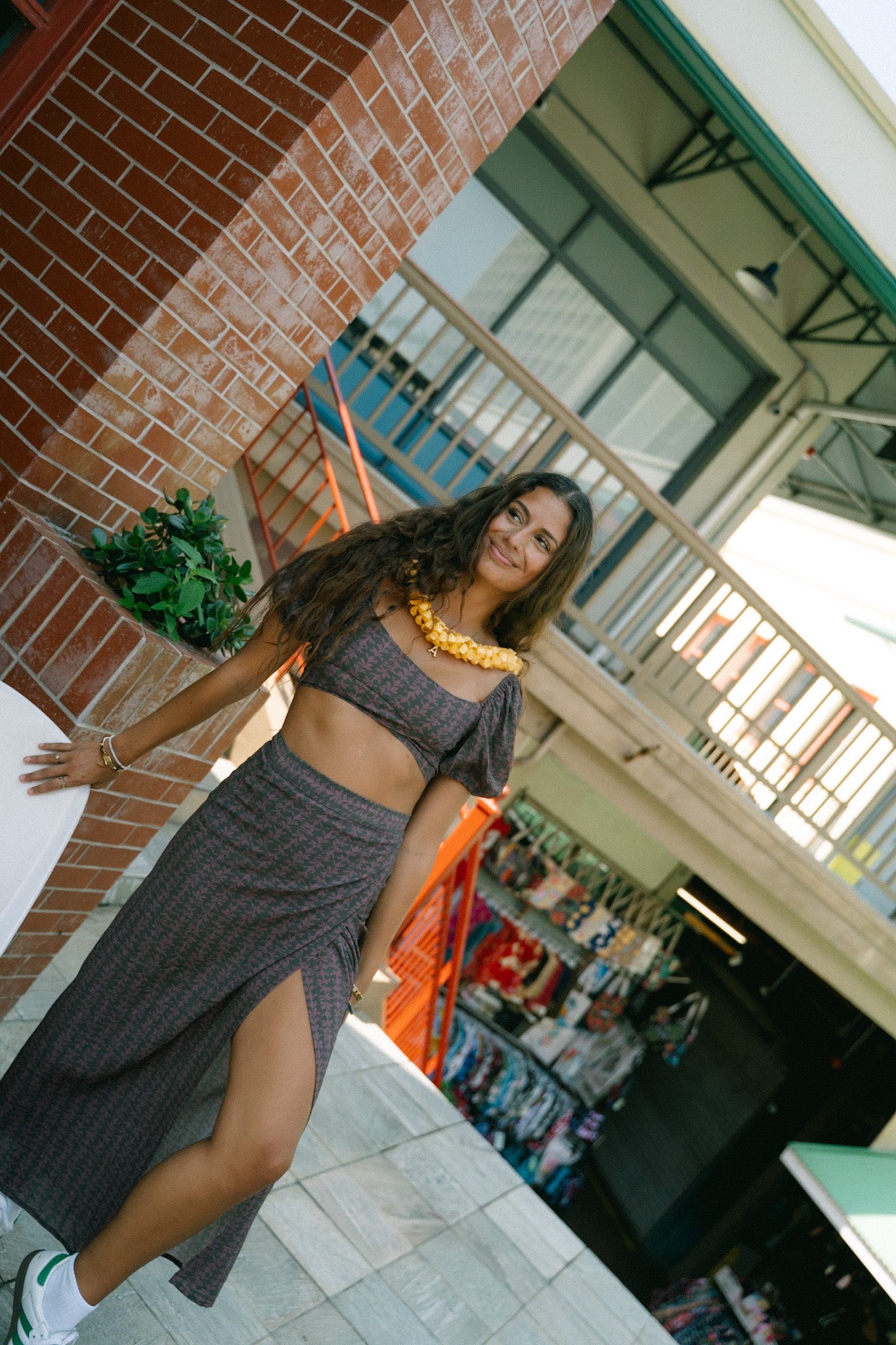 The Santorini Skirt is is a wrap-style maxi skirt that allows for an adjustable fit and a peak-a-boo side slit. Made for breezy looks or matching moments with coordinating tops, it's ideal for elevating your everyday island look.