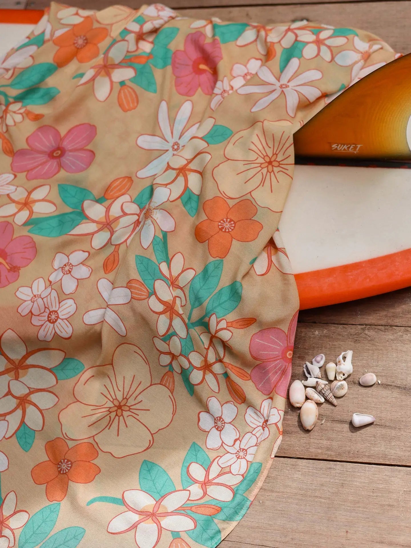 This print began as a morning walk through Kailua, a basket filling with plumeria, hibiscus, stephanotis, and tiare. A love letter to home and the blooms we grew up with, this pareo is soft, versatile, and made to carry a little beauty wherever you wander. The pareo, or sarong, is a versatile wardrobe staple with origins in Polynesian culture. From beach to city, our soft, breathable fabric dries quickly and drapes elegantly, flattering every body. A timeless essential loved by locals and travelers alike, our pareos offer both comfort and style for any occasion.