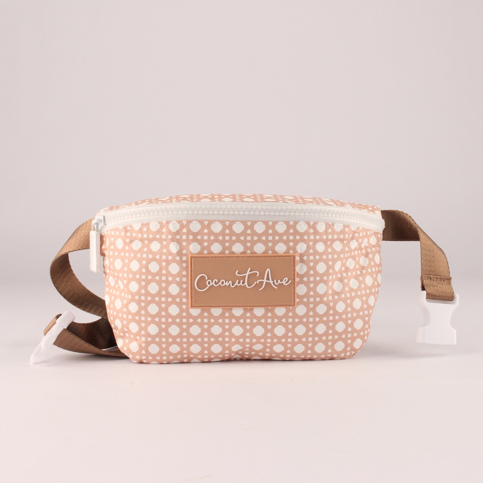 Introducing the Rattan Tyvek fanny pack. Made from water-resistant Tyvek material, this pack features a zipper closure and adjustable vinyl waist strap for a perfect fit. Perfect for a day at the beach or a tropical getaway.