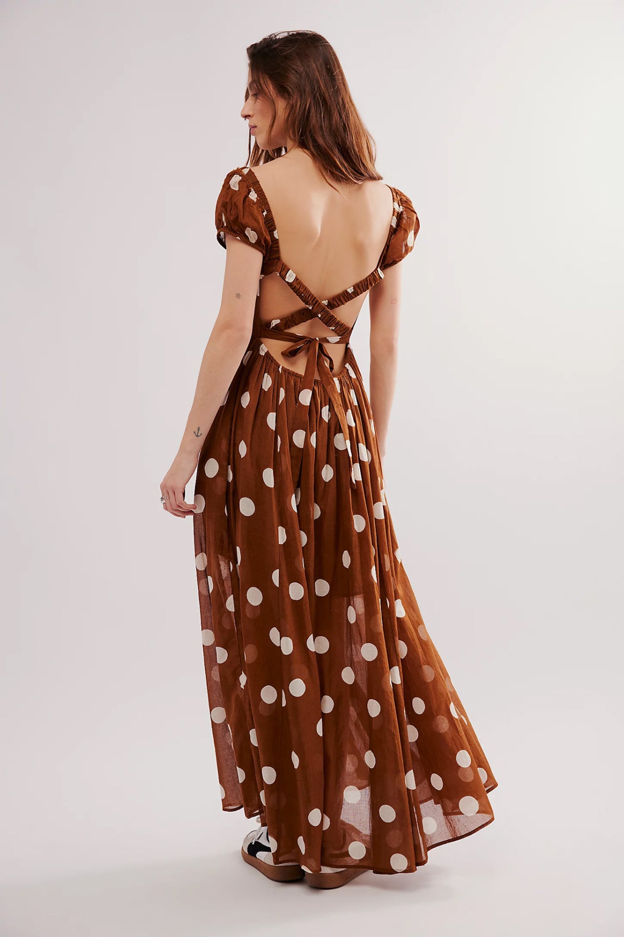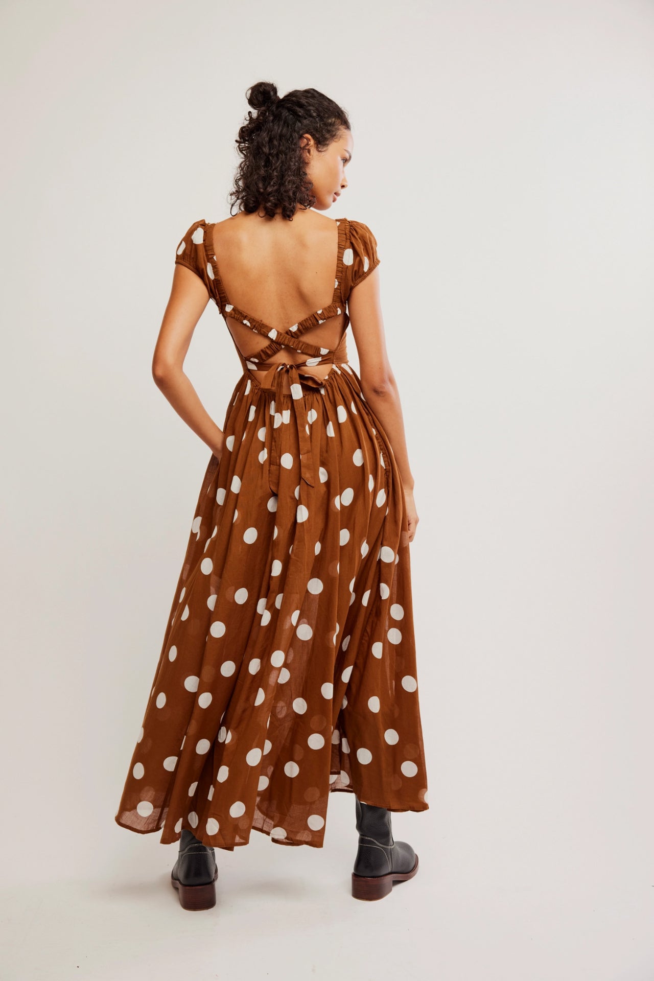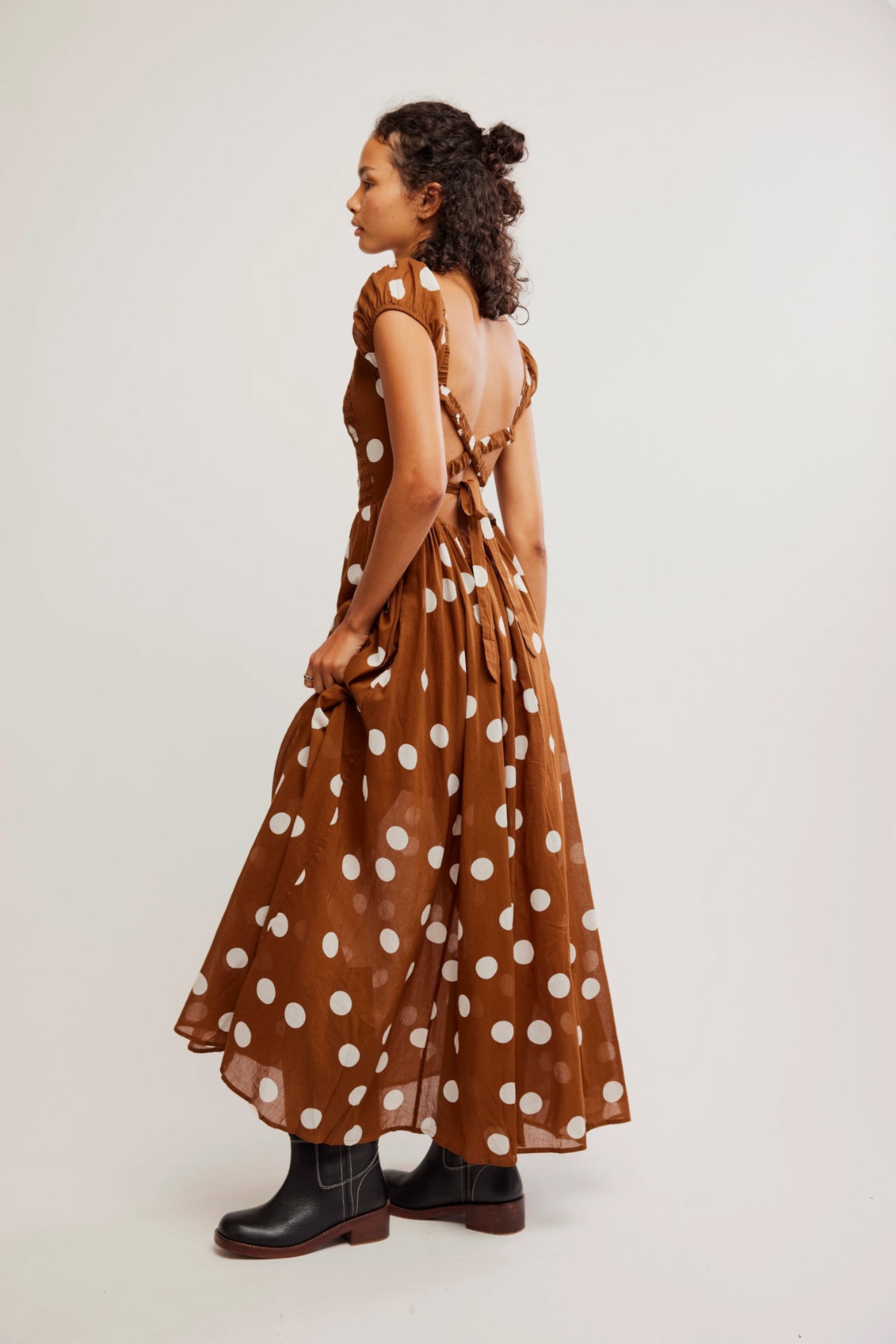 Turn heads in this so special maxi dress featuring smocked top piecing with puffed sleeves and strappy back detailing for added dimension.