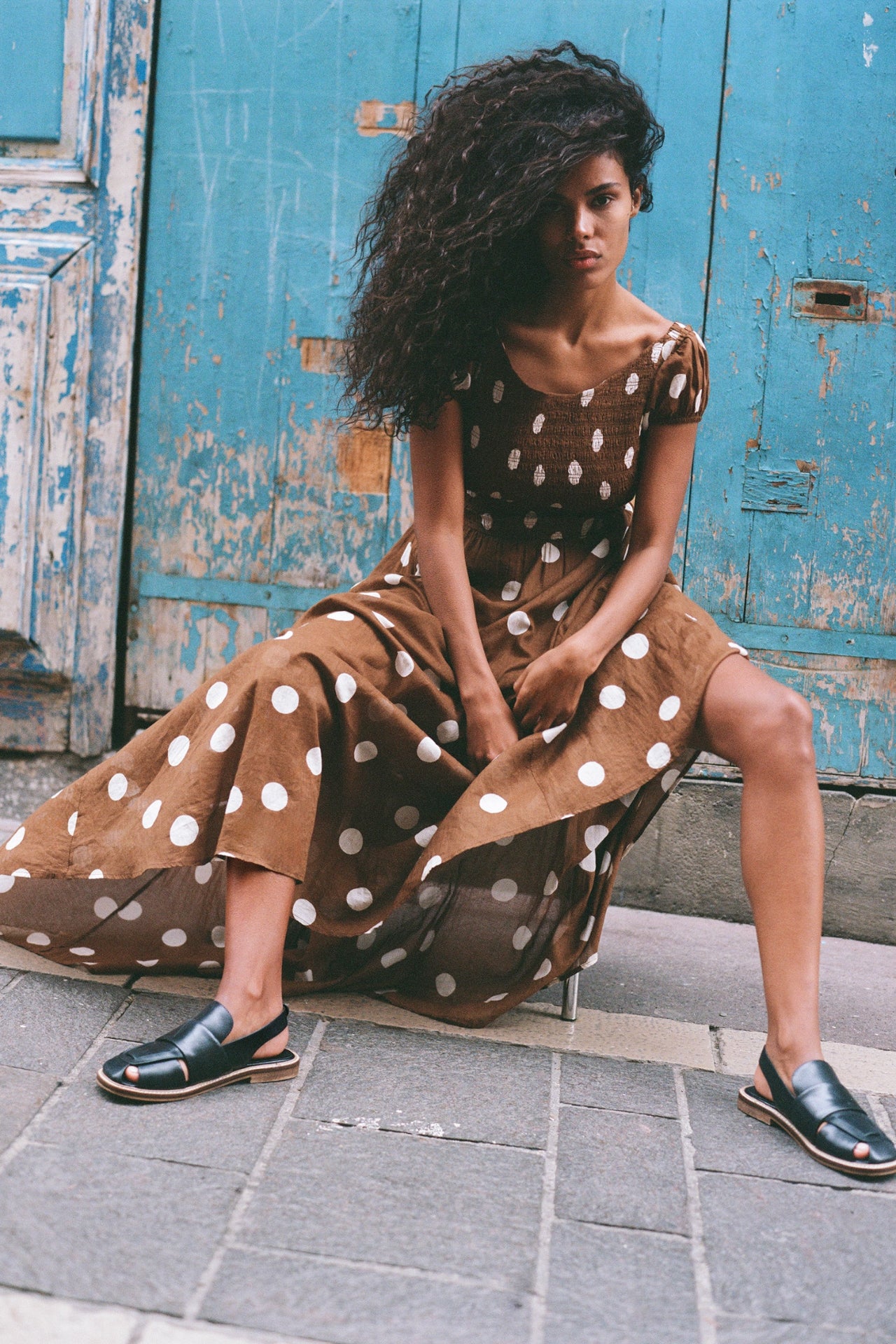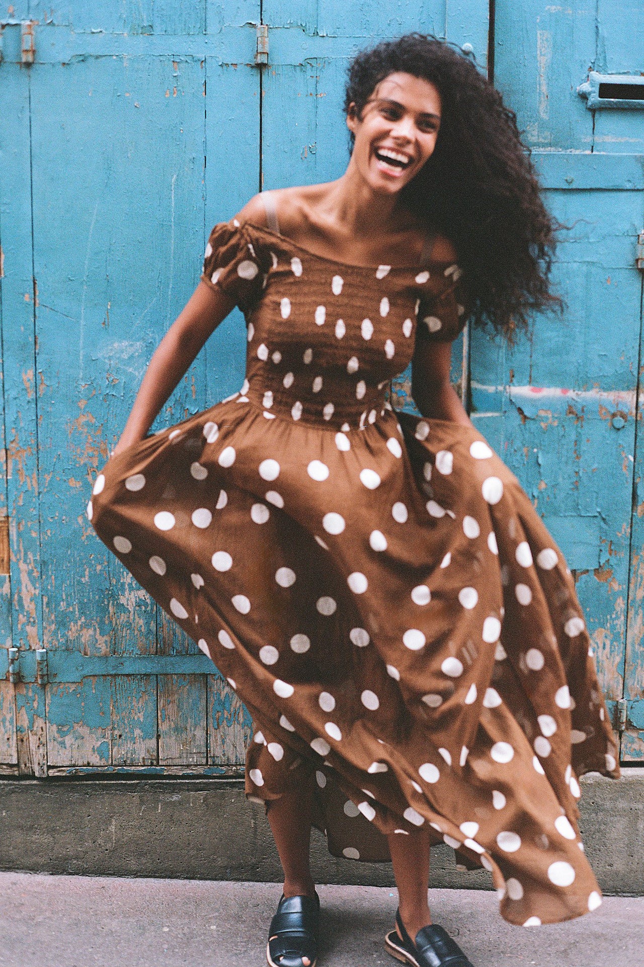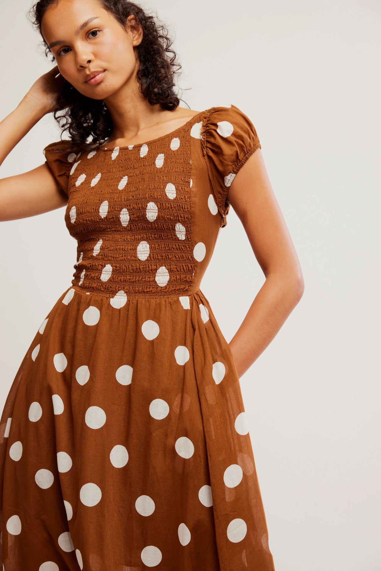 Turn heads in this so special maxi dress featuring smocked top piecing with puffed sleeves and strappy back detailing for added dimension.